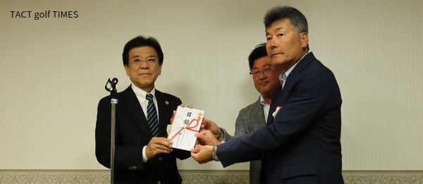 JGAのジュニア育成に関する資金として使用して頂きたい旨、守る会世話人代表の今西圭介氏よりJGAの山中博史・専務執行役へ手渡されました。